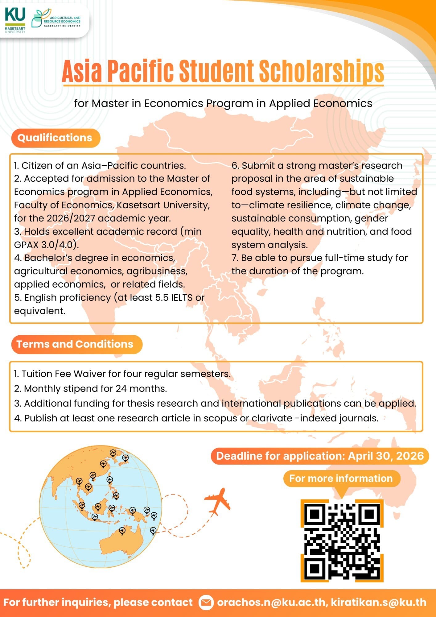 Ph.D. Scholarships Opportunity! We are excited to offer two scholarships for Ph.D. in Agricultural and Resource Economics (International Program) This opportunity is ideal for aspiring scholars who are passionate about driving sustainable agri-food system transformation in the Asia Pacific region...