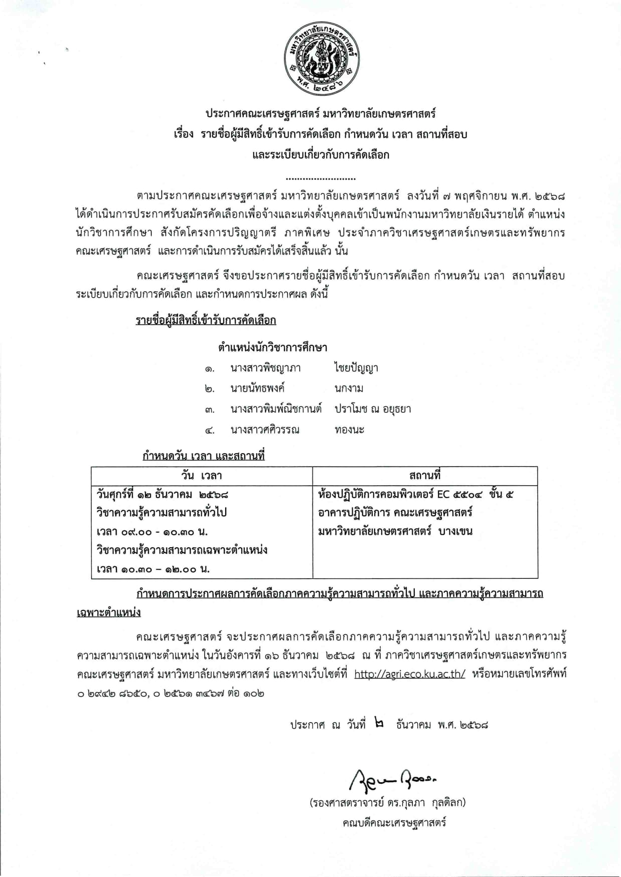 ประกาศ รายชื่อผู้มีสิทธิ์เข้ารับการคัดเลือก ตำแหน่ง นักวิชาการศึกษา สังกัดโครงการปริญญาตรี ภาคพิเศษ
