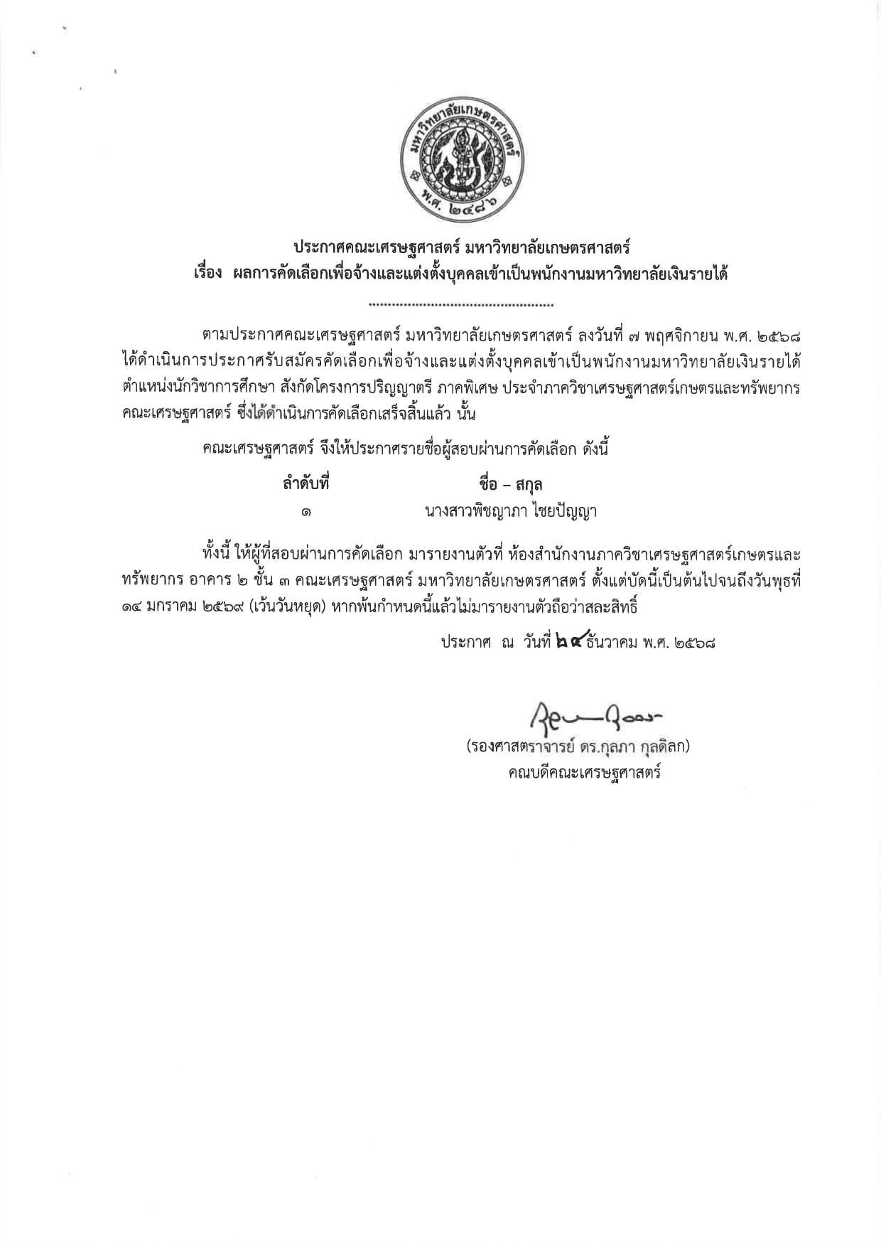 ประกาศผลการคัดเลือกเพื่อจ้างและแต่งตั้งบุคคลเข้าเป็นพนักงานมหาวิทยาลัยเงินรายได้