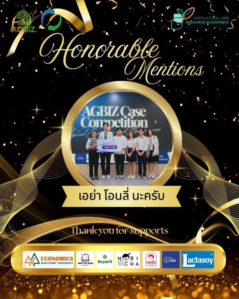 โครงการ AGBIZ Case Competition 2026 จัดโดยชุมนุมนิสิตภาคเศรษฐศาสตร์เกษตรและทรัพยากร ภายใต้การสนับสนุนของภาควิชาเศรษฐศาสตร์เกษตรและทรัพยากร คณะเศรษฐศาสตร์ ร่วมกับบริษัทฟางไทย เพื่อส่งเสริมการพัฒนาศักยภาพนิสิตด้านการวิเคราะห์ธุรกิจ การคิดเชิงกลยุทธ์ และการประยุกต์ใช้องค์ความรู้ทางเศรษฐศาสตร์กับสถานการณ์จริง